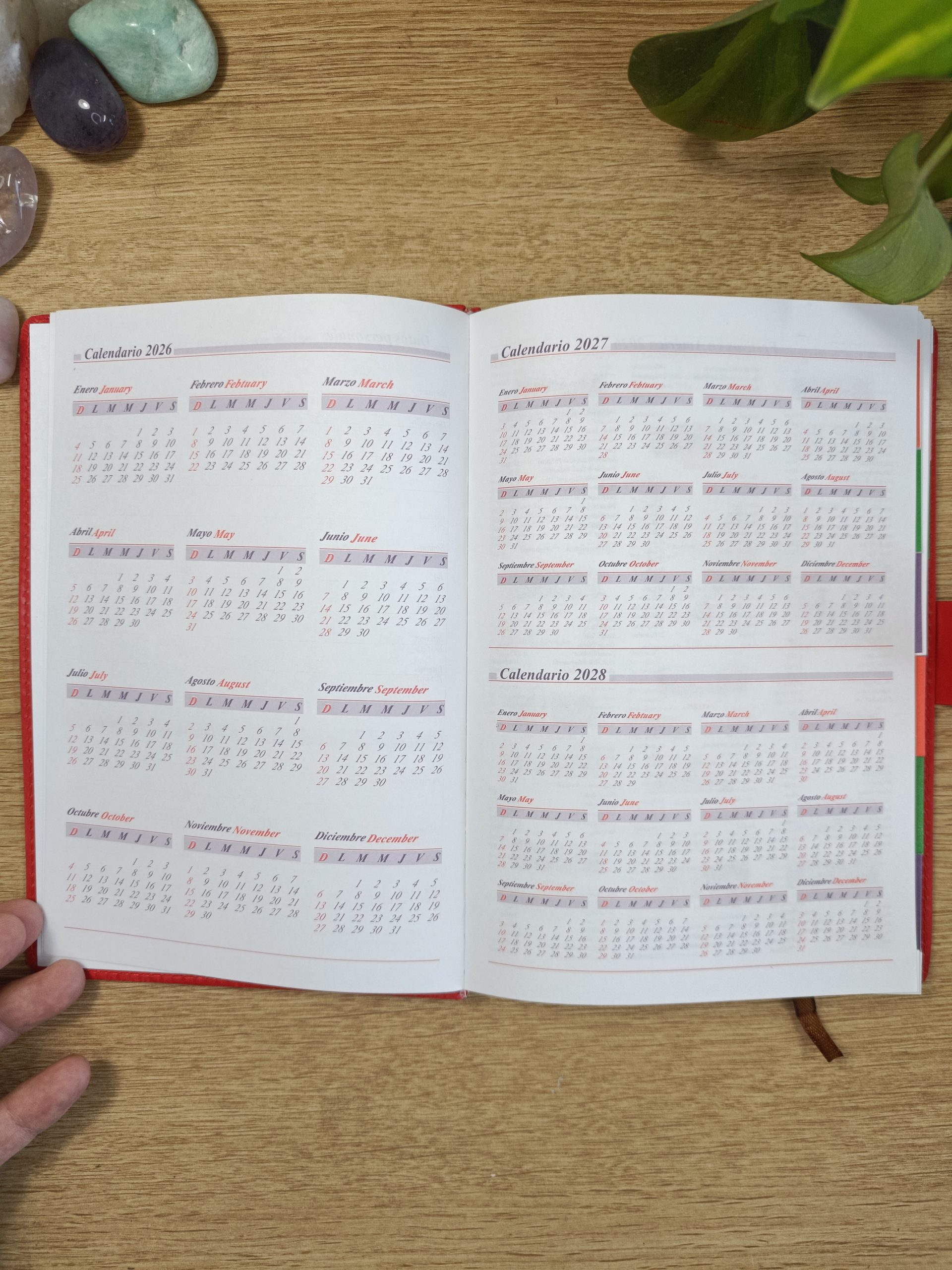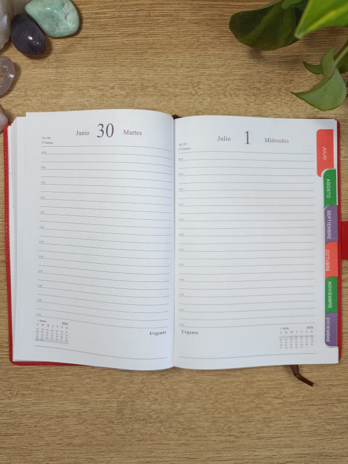 Agenda día a día: Cuenta con calendario de Enero a Diciembre 2026 y página por día con separadores por cada mes.